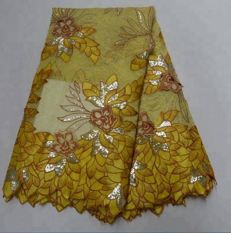 AG9001 Vải Organza Màu Vàng Vải Ren Châu Phi Sequin Vải Tuyn Ren Châu Phi Organza Ren Pháp