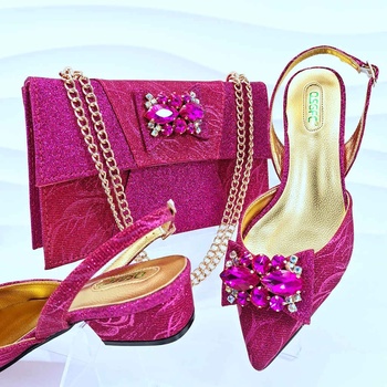 Allgreat AB8738 ดีไซน์สไตล์อิตาลีฟูเชียหรูหราสําหรับผู้หญิง 2024 รองเท้าปาร์ตี้และกระเป๋าชุดจับคู่